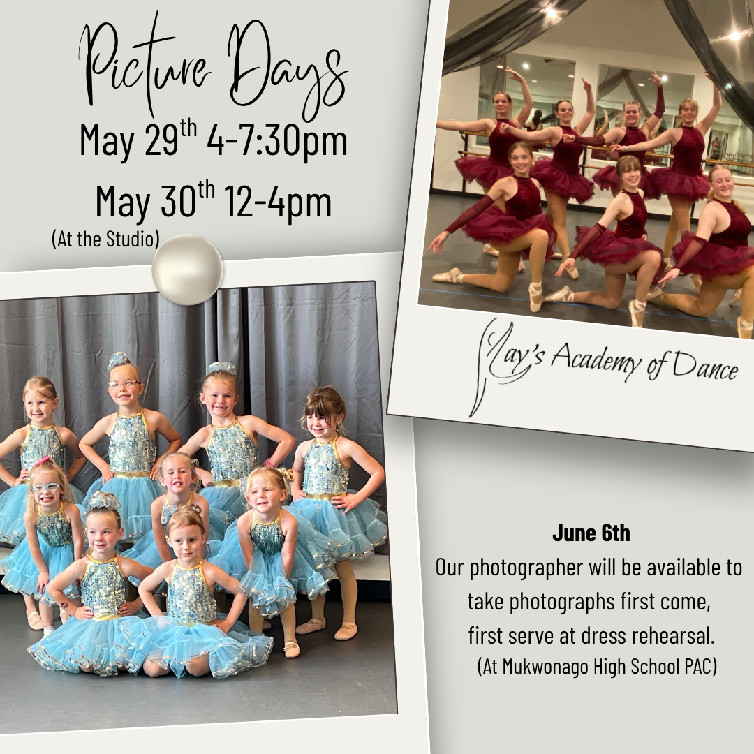 We have many opportunities for your dancer to get professional photographs taken in their recital costumes!